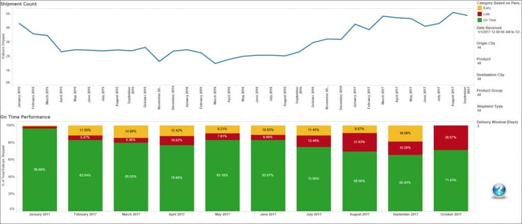 Shippers usually require freight volume reports by location, customer, and product. On-Time Reports can be an important customer service metric for knowing if your customers are receiving product within anticipated delivery windows.